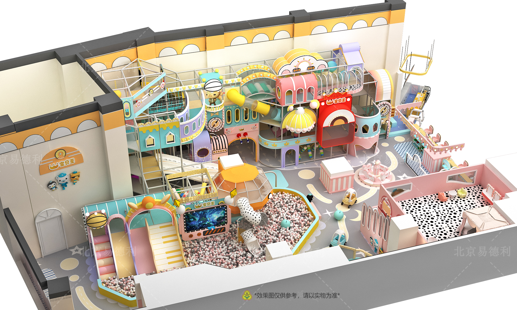 易德利湖南常德萬達寶貝王室內(nèi)兒童樂園從選品、溝通、設(shè)計、生產(chǎn)、安裝 到 售后一體完落地。