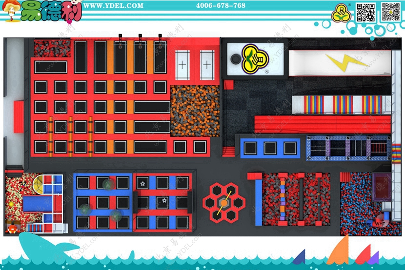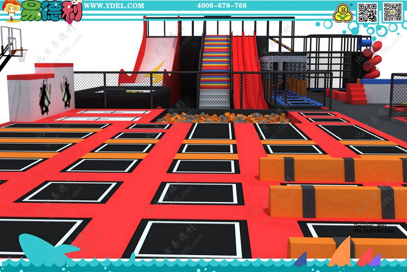蹦床公園按照框架式設(shè)計理念,將整個場地按照安全標(biāo)準分割開來,有專門提供兒童游樂的滑梯、球池、蹦床,還有專門為喜歡新鮮刺激年輕人提供的專業(yè)蹦床以及網(wǎng)紅項目的區(qū)域,確保游戲過程中的安全性。