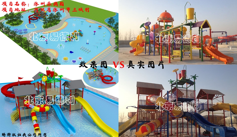 兩套不同造型大型水滑梯,加上各種樣式小品,孩子們一定玩得不亦說乎。水滑梯鐵件均采用鍍鋅鋼材質防腐防銹,塑料部件防紫外線處理,適用于室外惡劣環境,堅固耐用。