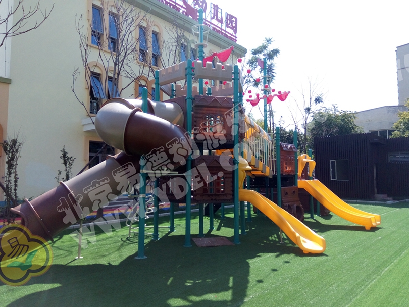 三河北大培文幼兒園海盜船系列滑梯,真實打造海盜船模式,逼真船頭設計,讓孩子仿佛真有揚帆起航的樂趣。滑梯塑料部分采用進口工程塑料,色彩鮮艷,常年不褪色;鐵件部分烤漆