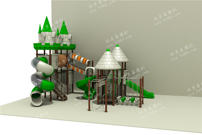 格瑞特雙語幼兒園城堡大滑梯,易德利獨家擁有設計模型,進口工程塑料部件,防紫外線,常年日照不褪色;鐵件部分,采用特殊除銹工藝烤漆上色,戶外多年不褪色。
