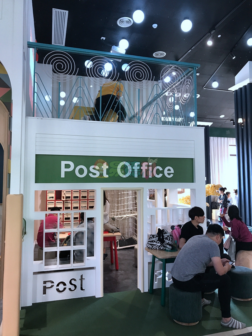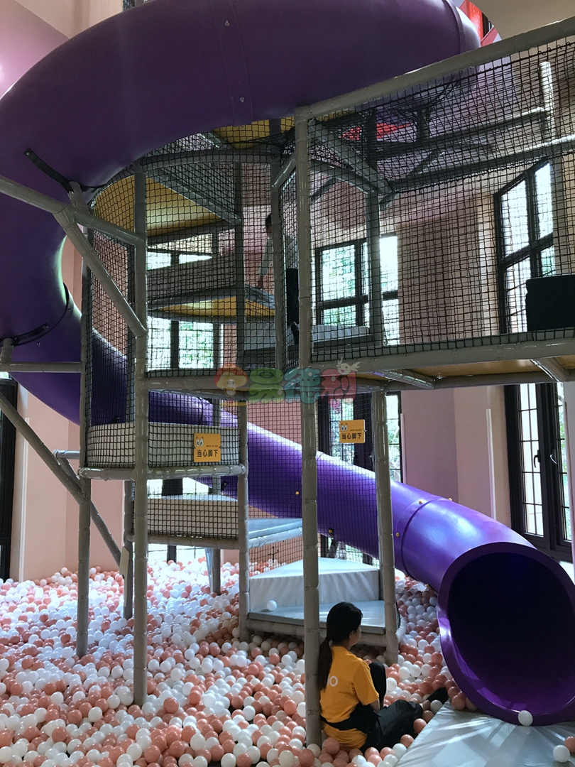 從模擬小鎮(zhèn)經(jīng)過一條長長的時空走廊就到了大童區(qū)了,這里是孩子們的天堂,絕不止是布置的像天堂!這里有各種各樣的滑梯,攀爬梯,手工作坊占滿了整層樓,像一個巨大的迷宮。家長們也不需閑著,在這里,和你的寶貝做一件屬于她自己紀念品吧。當然最矚目的是一條s形的滑梯,可以直接從二樓滑到一樓的餐廳區(qū)。