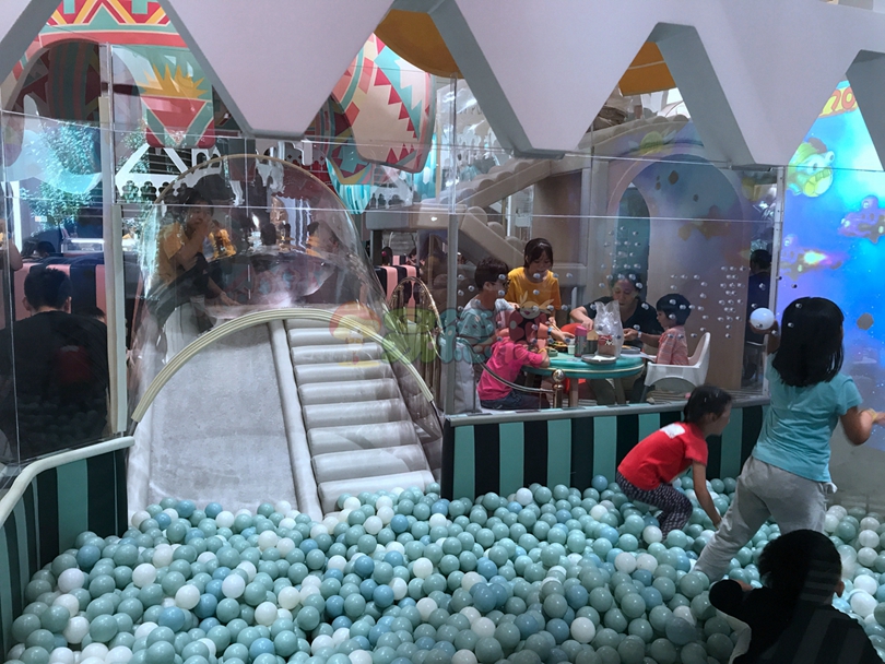 在暢玩之后,家長們就可以帶著小朋友來餐廳享受美味佳肴了。餐廳的設(shè)計風(fēng)格也是別具匠心,四周有很多像熱氣球懸掛著的游戲盒子,幽長的透明隧道串聯(lián)起這些游戲屋,小朋友們可以在里面爬來爬去嬉戲玩鬧。就餐位置離這些游戲屋很近,讓家長們可以在用餐的同時也可以照看到自己的小寶寶。餐廳區(qū)還準備了兩個VIP的房間對于想安靜就餐的家長和孩子又是一大福音!