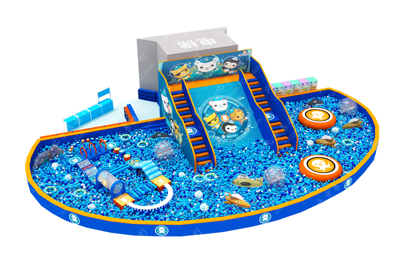 百萬海洋球池中的開放式滑滑梯