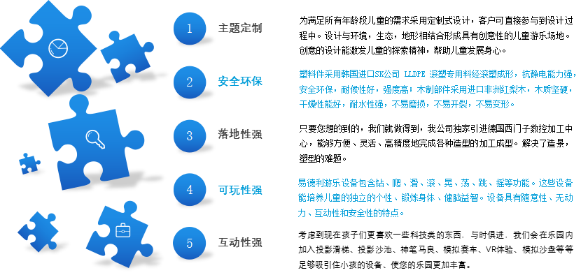兒童淘氣堡游樂設備,維護“易德利”品牌在用戶中的良好形象及信譽。我公司保證此次提供的所有游樂設備器材均為一流工藝和最佳材料制造而成的全新、未經使用過并完全符合招標文件技術要求和國家標準的最佳產品,并保證此次所有工程的配建及服務均按照“交鑰匙工程”服務標準進行服務。