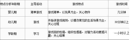 不同年齡期兒童游戲的特點